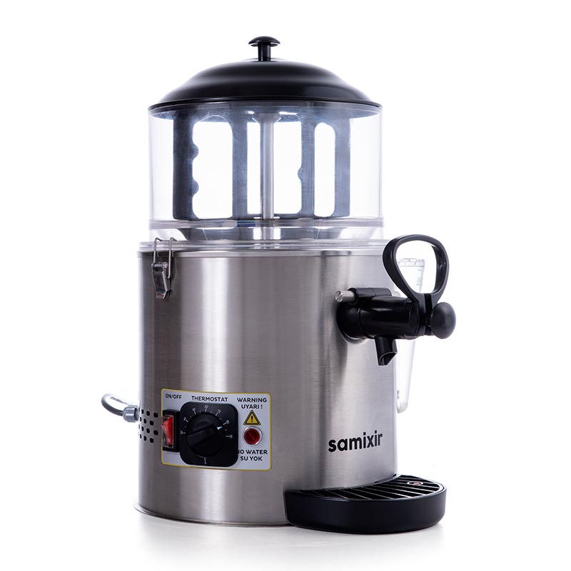 Samixir SC.06 Sıcak Çikolata ve Sahlep Makinesi, 6 L, Siyah Salep, sıcak çikolata, çay, kahve, süt ve benzeri sıcak içilen içecekleri "BAIN-MARIE" yöntemi ile sıcak tutan, homojen ve topaksız olarak karıştıran ve dağıtımını sağlayan 6 litre kapasiteli tezgah üstü sıcak içecek dispenseri Özel tasarlanmış "BAIN-MARIE" ısıtma sistemi sayesinde sıcak içecekler yoğunlaşmaz ve haznenin dibine yapışmaz Tüm metal aksam yüksek kalite paslanmaz çelikten üretilmiştir Karıştırma paletinin devamlı dönmesi sayesinde akışkan kıvam korunur, topak oluşmaz "BAIN-MARIE" sisteminin su seviyesi gövde dışından gözlemlenebilir. Kapalı devre "BAIN-MARIE" su ısıtma sistemi sayesinde su buharı kaybı oluşmaz, su seviyesi uzun süre korunur, bu sayede rezistansın kireçlenmesi önlenir Susuz çalışması durumunda gövde dışı ikaz ışığı yanarak makineye su eklenmesi gerektiğini bildirir Katılaşmış içecegin musluktan akışının zorlaşması durumunda musluk içine yerleşik açma pimi ile sorun çözülür Mükemmel temizlik ve hijyen için içecek ile temas eden tüm parçalara kolayca ulaşılır ve hızlı bir şekilde temizlenebilir "BAIN-MARIE" kazanının dış gövdeden bağımsız olması sayesinde kullanıcının elini yakması engellenir, ısı kaybı oluşmaz. Damlalıkta bulunan seviye göstergesi sayesinde atık suyun taşmadan önce boşaltılması gerektiği rahatça fark edilir Teknik Özellikler Renk: Siyah Hazne Kapasitesi: 6 L Makine Ağırlığı: 6.5 kg Makine Genişliği: 275 mm Makine Yüksekliği: 450 mm Makine Derinliği: 360 mm Isıtma Gücü: 1000 W Koli Ağırlığı: 7.5 kg Koli Genişliği: 300 mm Koli Yüksekliği: 470 mm Koli Derinliği: 300 mm Besleme Voltajı: 230V 50Hz BAIN-MARIE: gıdanın içinde bulundugu kabın su dolu başka bir kap içine oturtularak altta bulunan suyun ısınması sayesinde yavaş yavaş pişirilmesi işlemidir. Böylece gıda ısı kaynağı ile direkt temasta olmadan pişer, gıdanın aşırı ısı nedeniyle topaklaşması ve hatta yanması engellenmiş olur. Bu islemi yapan cihazın yapısının ısıyı çabuk iletmeyen, kalın malzemeden imal edilmis olması gerekir. İşlemin sorunsuz olarak yürütülmesi için cihaz içindeki suyun gerekli olan asgari seviyenin üstünde tutulması çok önemlidir. Daha Fazla Göster